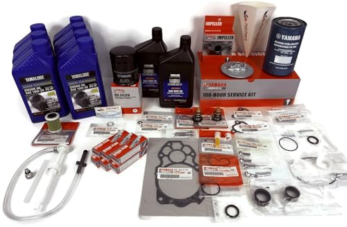 Keep your Yamaha 4.2L V6 outboard running smoothly with this comprehensive 100-hour service kit. Includes essential maintenance parts like oil filters, thermostats, water pump repair kit, and fuel filters for optimal performance and reliability.