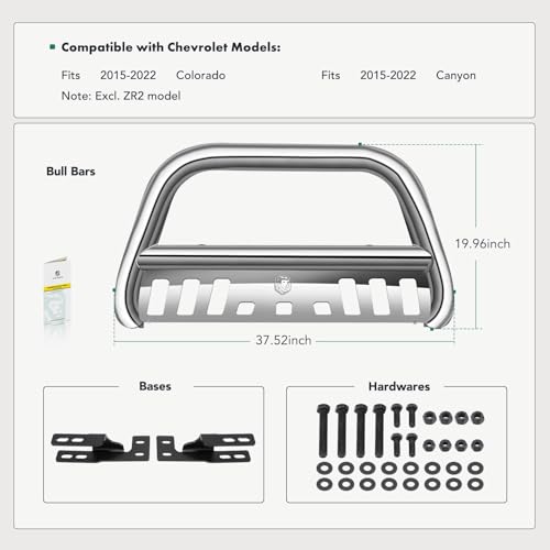 Designed specifically for Chevy and GMC Colorado/Canyon models from 2015-2022 (excluding the ZR2 model), the YHTAUTO Bull Bar ensures a perfect fit. All necessary mounting hardware is included, and the clear instructions made the installation process hassle-free. Even if you’re not a seasoned mechanic, you’ll find the setup manageable with basic tools.