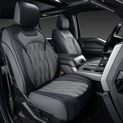 Transform your ride with COVER EMPIRE's premium leather seat covers. Universal fit, full front coverage, and waterproof protection for trucks, SUVs, and sedans. Includes lumbar support for ultimate comfort and style in sleek gray.