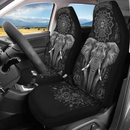 Boho Elephant Print Universal Car Seat Covers Set | Soft Stretchy Full Protection