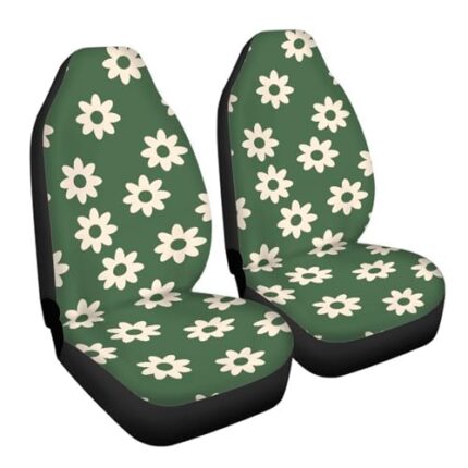Boho Floral Car Seat Covers: Breathable Green Hippie Front Seat Cushions (2pk)