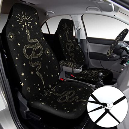 Boho Celestial Snake Print Car Interior Set: 15pc Full Protection Seat Cover Kit
