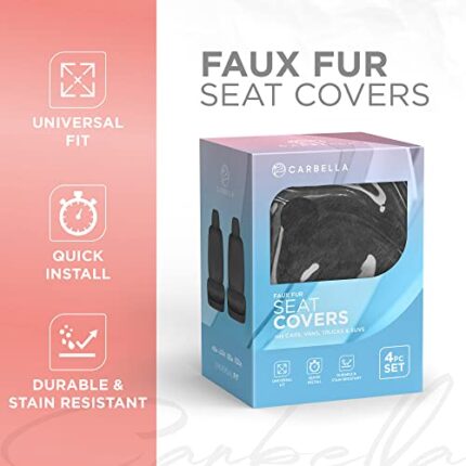 Carbella Black Faux Fur Car Seat Covers for Women, 2-Pack Front Only